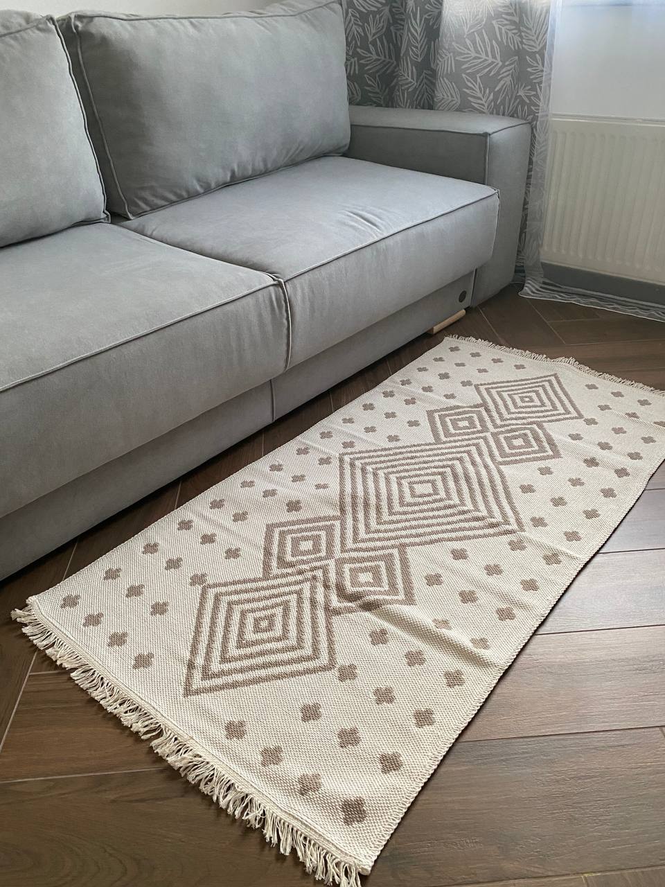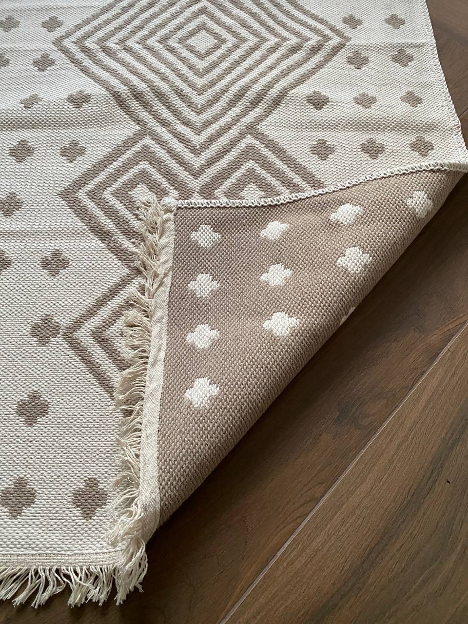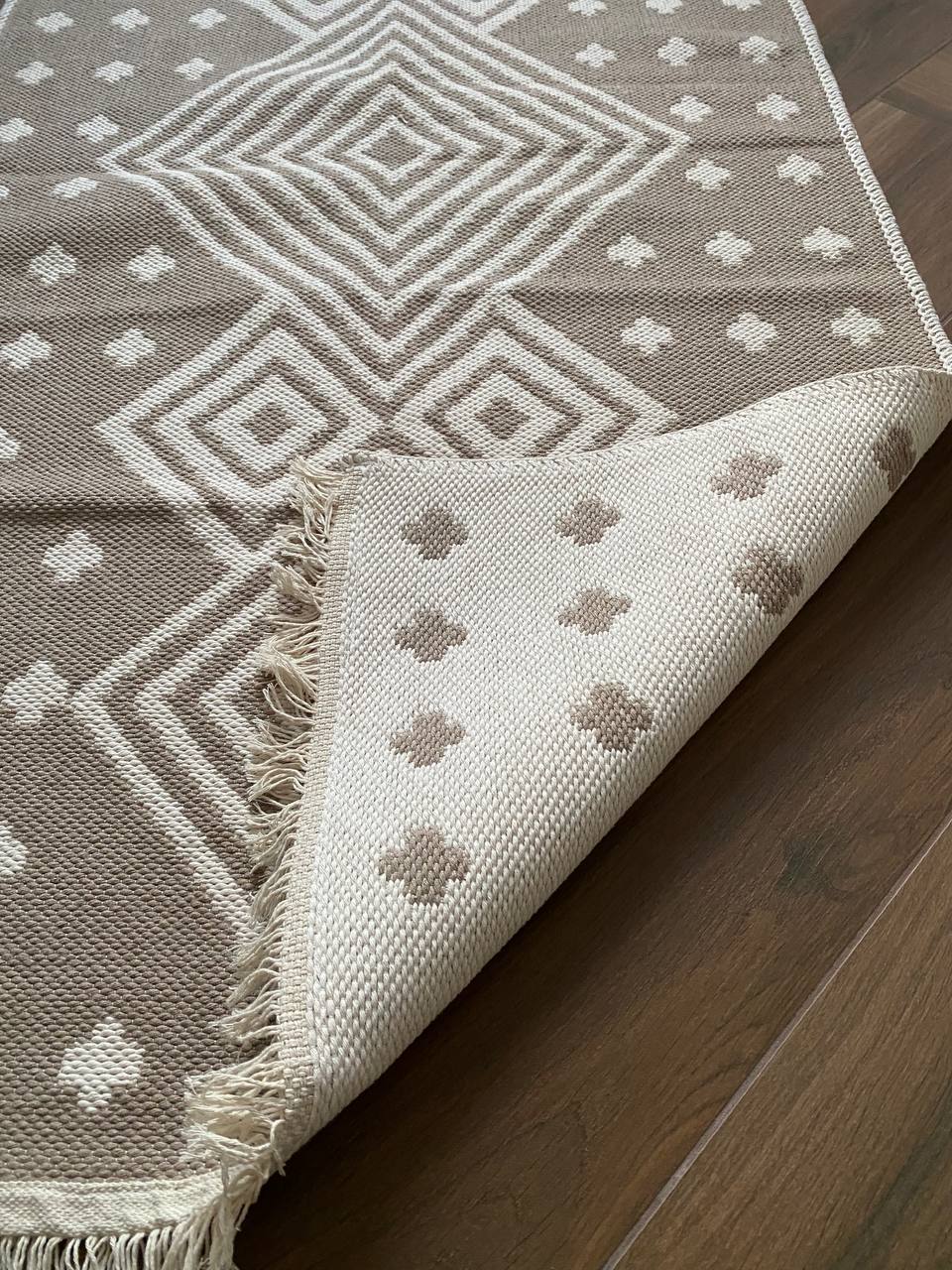 Бавовняний двосторонній килим у сучасному стилі Kara 019 C.Beige