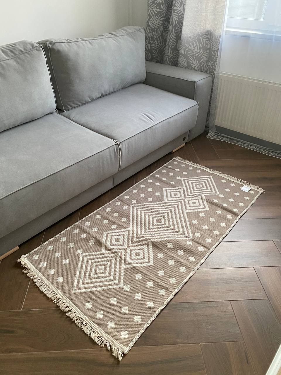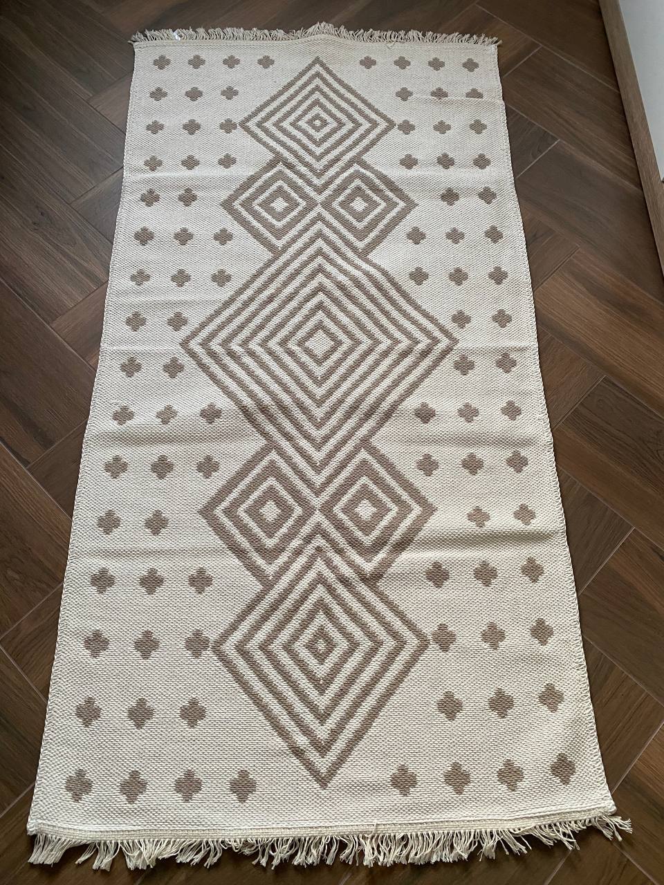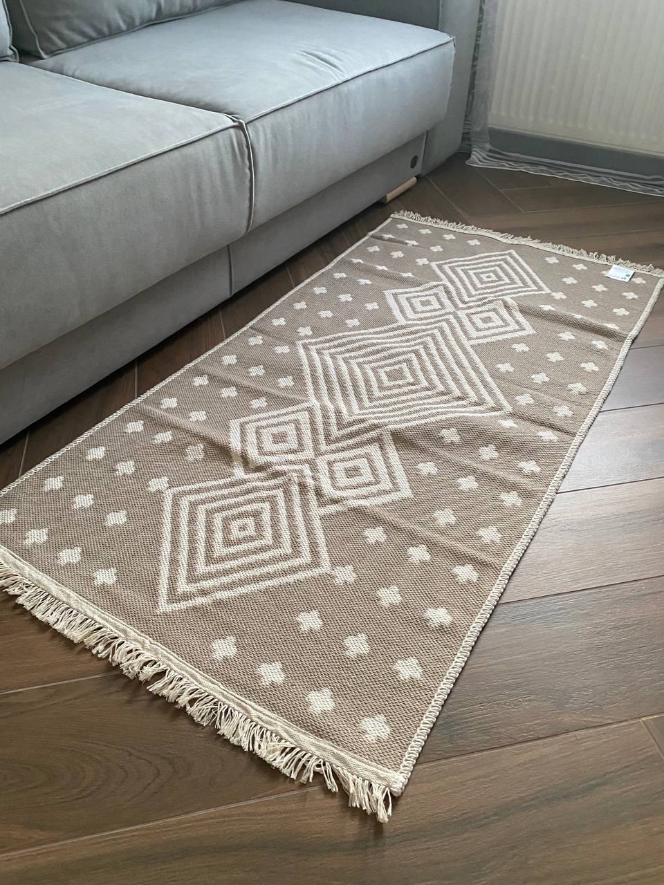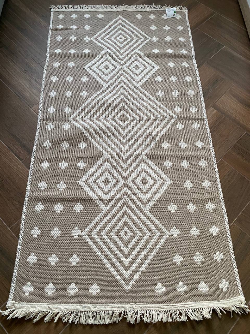 Бавовняний двосторонній килим у сучасному стилі Kara 019 C.Beige