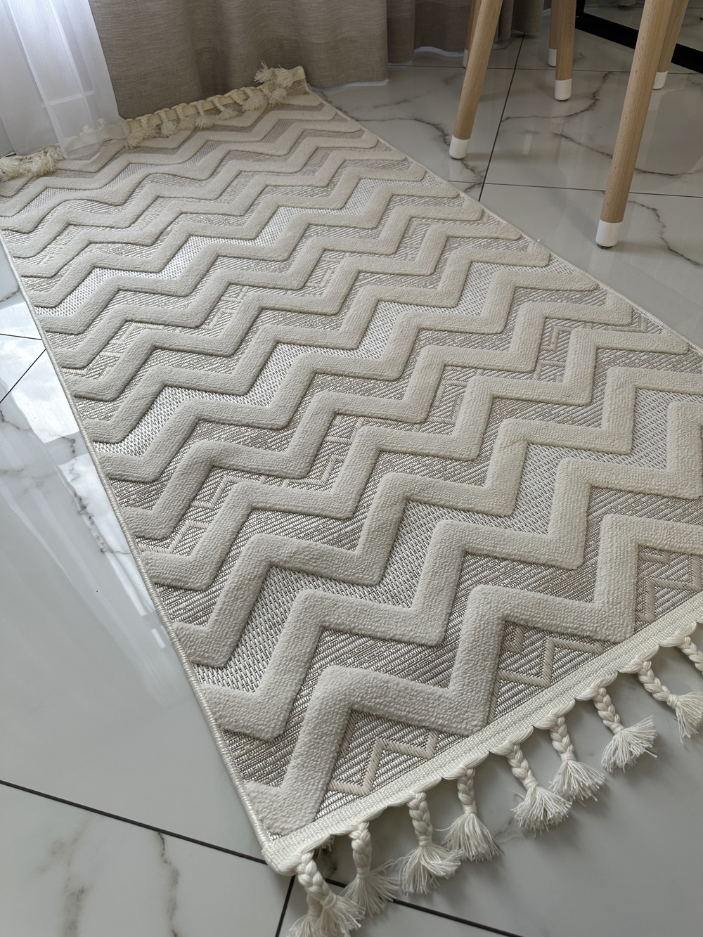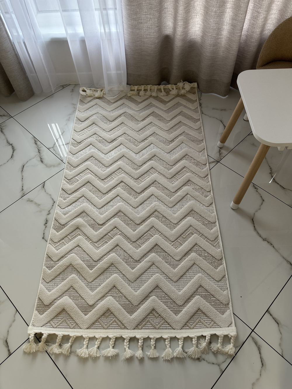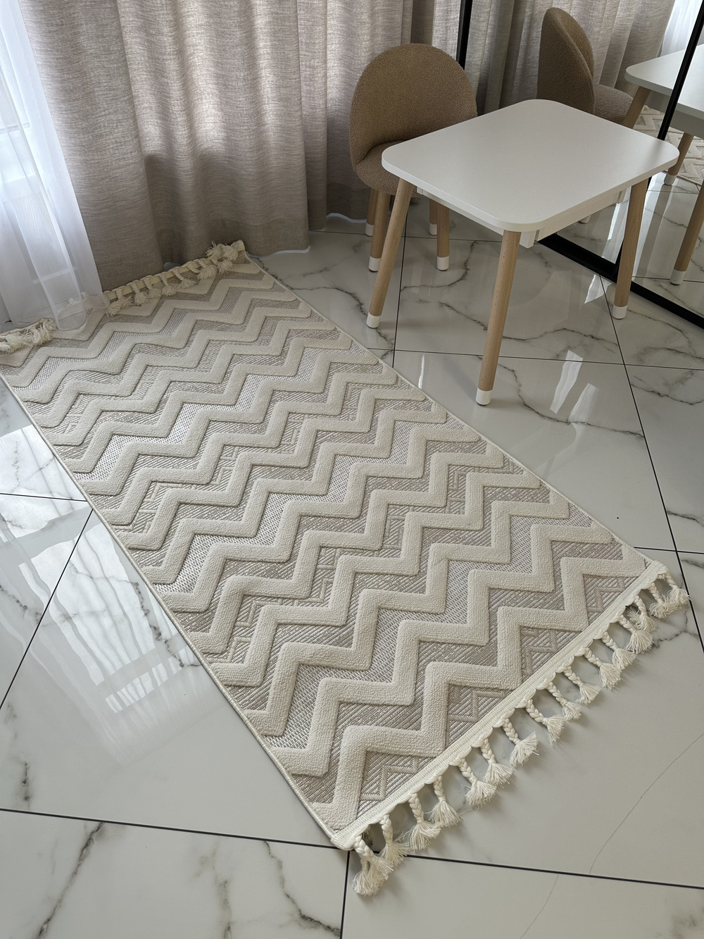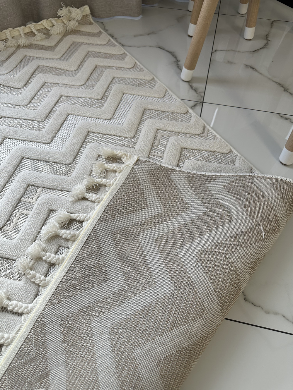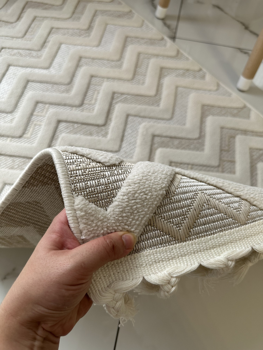 Стильні, актуальні дизайни килимів Dolche просто знахідка для сучасного інтер’єру. Килими виконані у скандинавському стилі, сірих та бежевих тонах з рогожки у поєднанні із щільним ворсом, що створює м’який рельєф. Відрізняються великим терміном служби, легко миються, невибагливі у догляді. Стануть прикрасою для вітальні, дитячої, коридору або передпокою, завдяки своєму етнічному малюнку та практичності.