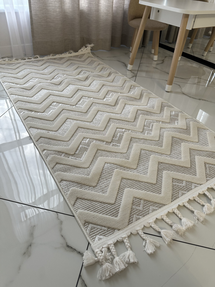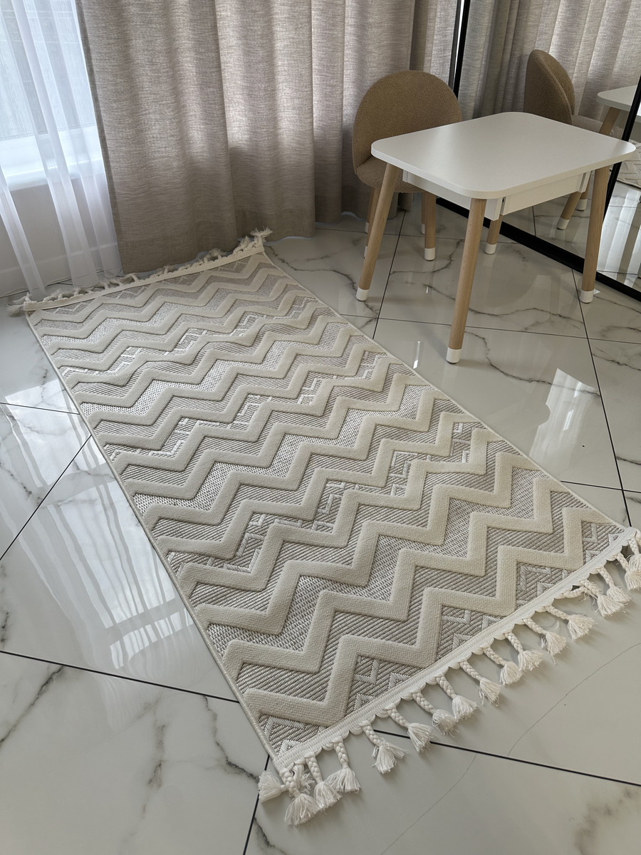 Стильні, актуальні дизайни килимів Dolche просто знахідка для сучасного інтер’єру. Килими виконані у скандинавському стилі, сірих та бежевих тонах з рогожки у поєднанні із щільним ворсом, що створює м’який рельєф. Відрізняються великим терміном служби, легко миються, невибагливі у догляді. Стануть прикрасою для вітальні, дитячої, коридору або передпокою, завдяки своєму етнічному малюнку та практичності.