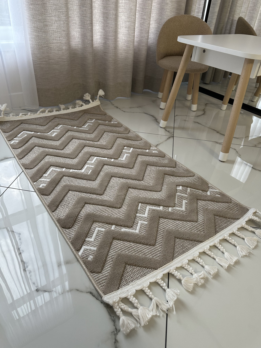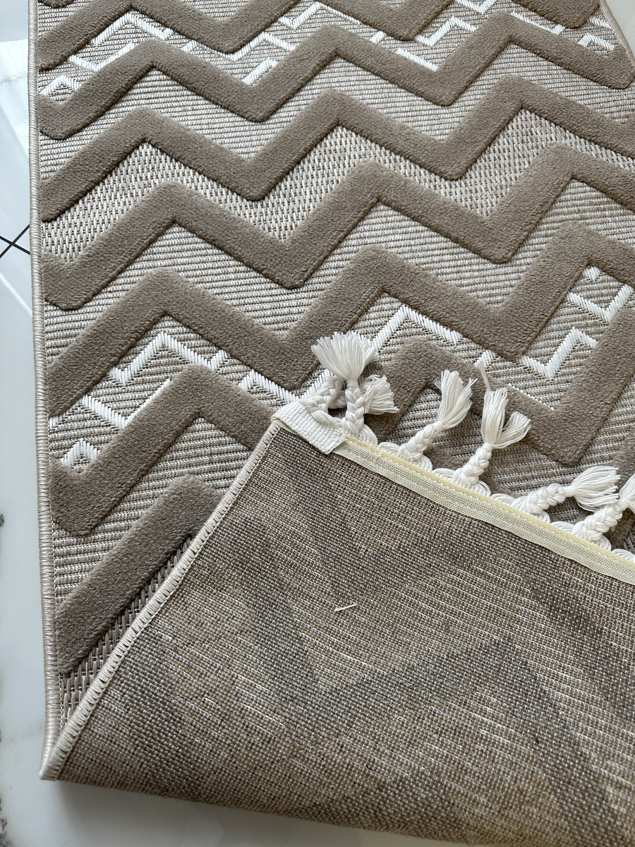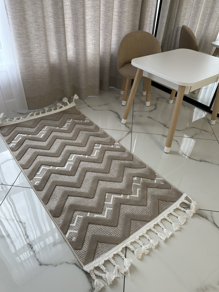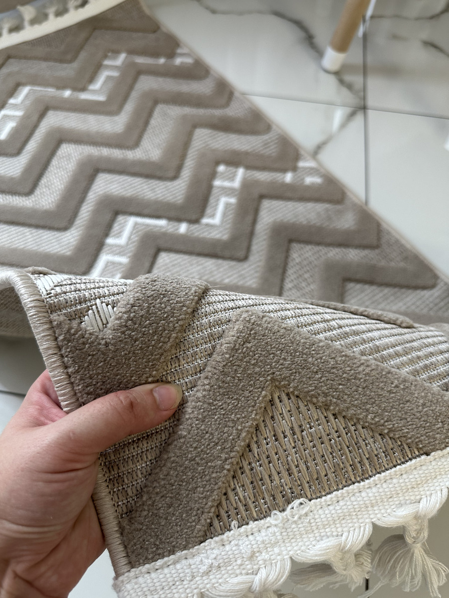 Стильні, актуальні дизайни килимів Dolche просто знахідка для сучасного інтер’єру. Килими виконані у скандинавському стилі, сірих та бежевих тонах з рогожки у поєднанні із щільним ворсом, що створює м’який рельєф. Відрізняються великим терміном служби, легко миються, невибагливі у догляді. Стануть прикрасою для вітальні, дитячої, коридору або передпокою, завдяки своєму етнічному малюнку та практичності.